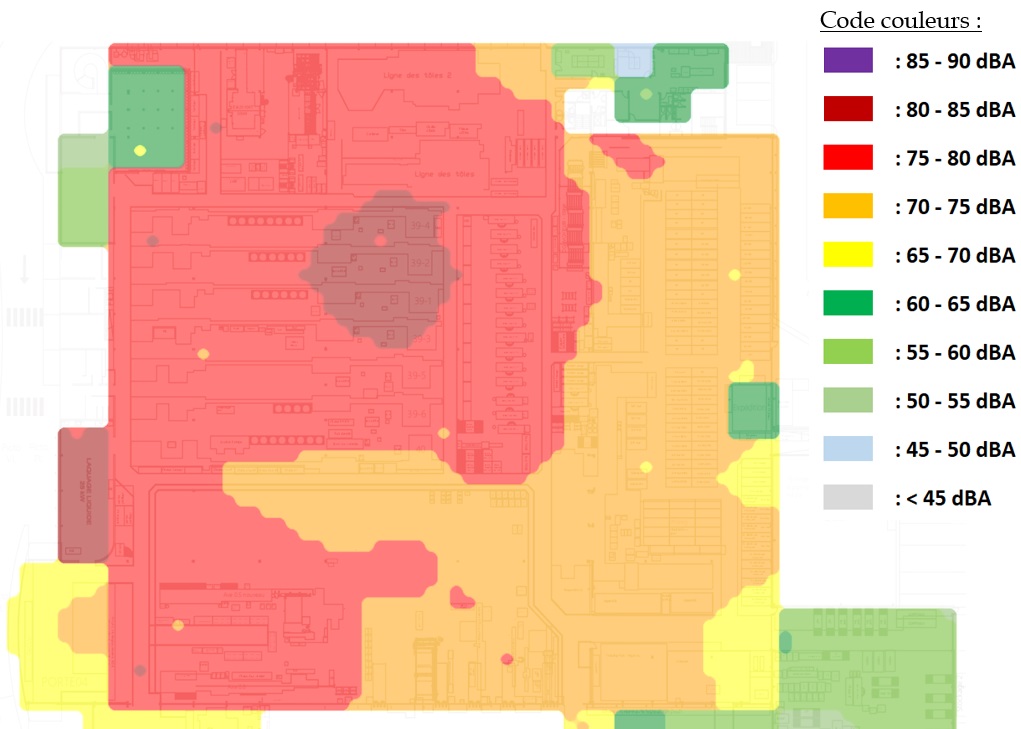 Prestation réalisée par Phoenix Acoustique : Phoenix Acoustique est intervenu pour évaluer les niveaux sonores auxquels sont soumis les salariés de l’établissement concerné, à différents postes de travail. Une cartographie 2D en couleurs des niveaux sonores a été produite. Prestation terminée en 2024 |